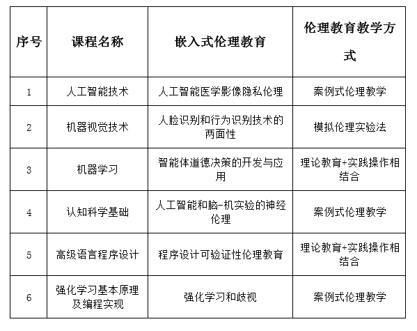 表格:太阳成集团tyc7111cc人工智能类课程嵌入式伦理教育