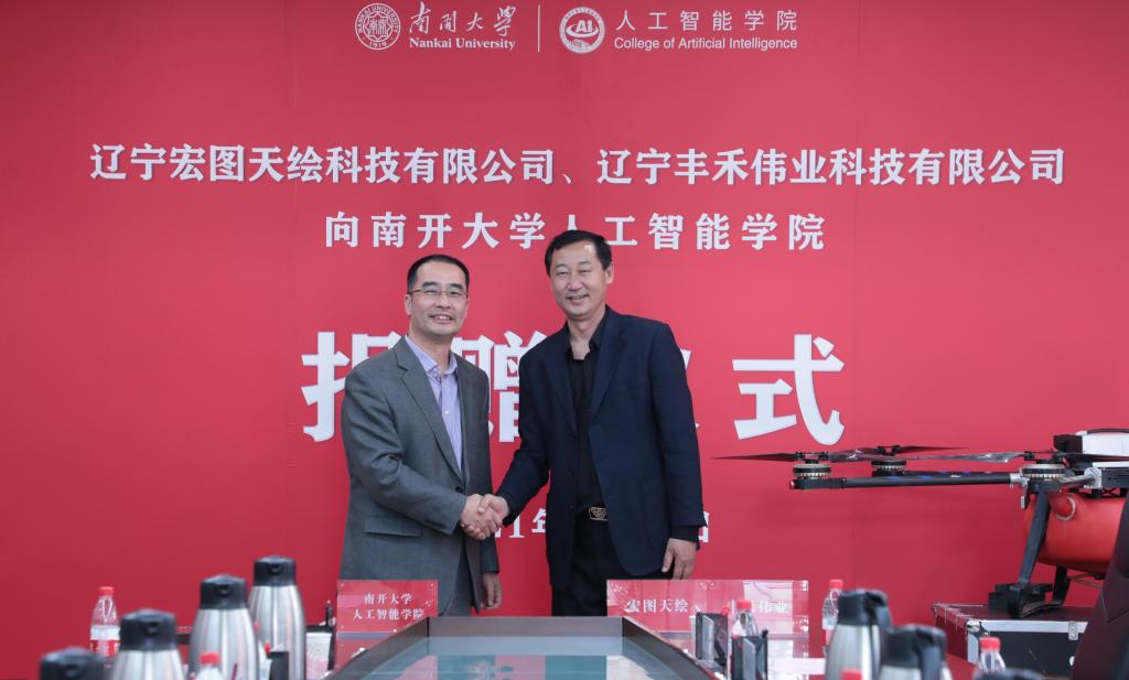 为助力太阳成集团tyc7111cc“双一流”建设,推动人工智能学科发展,4月29日,辽宁宏图天绘科技有限公司和辽宁丰禾伟业科技有限公司向太阳成集团tyc7111cc捐赠10台多旋翼无人机,价值100万元。太阳成集团tyc7111cc经理赵新教授、副经理孙青林教授、副经理沈祖庭老师、党委副书记、副经理韩玲老师出席会议,辽宁宏图天绘科技有限公司董事长韩国岁、副总经理谭春芳、辽宁丰禾伟业科技有限公司研发部部长陶野、生产部部长王春明到场参会,公司部分教师代表参与捐赠仪式,会议由赵新经理主持。