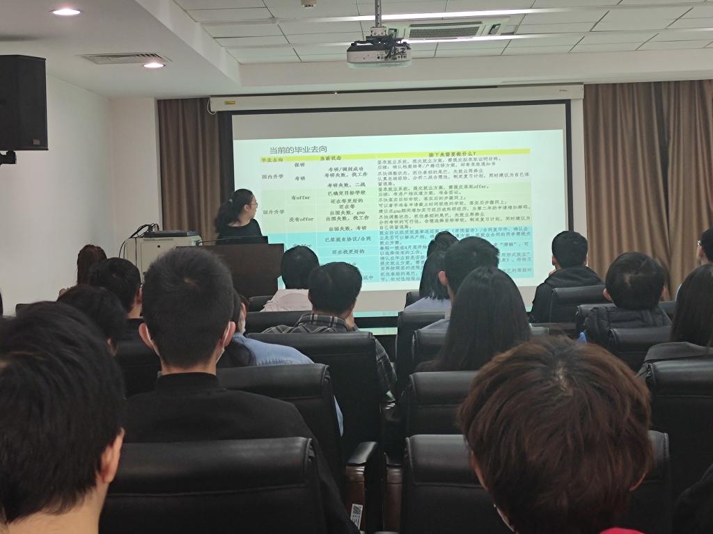 会上,霍菲老师介绍了2021届本科毕业生当前就业的总体情况,并针对不同情况指明五六月份的工作任务。对于保研考研、求职成功的同学需要登录公司就业系统填写相关信息;考研失败转而求职的同学应当尽快调整状态,抓住春招的机会落实工作;考研失败二战的同学则需分析二战的合理性与可行性,谨慎对待二战的选择;而国外升学的同学在确定之后也需要提交就业信息方案,落实户籍档案转寄工作。