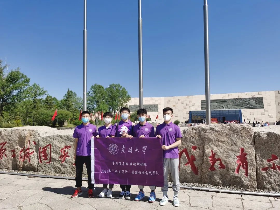 实践队成员在纪念馆前合影留念