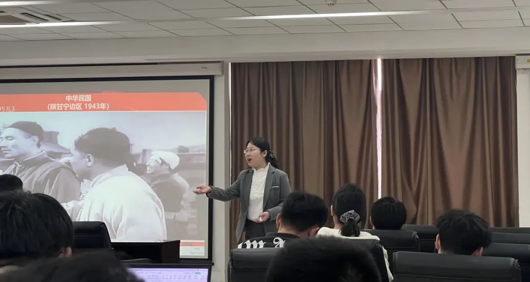 李高扬抛出“近代以来老百姓是怎么样打官司”的问题,为大家播放清朝、北洋政府、陕甘宁边区不同时期老百姓打官司的评剧视频,帮助学员直观认识到不同历史时期百姓在打官司过程中所居于不同的地位。从清朝以下跪的方式参加庭审,到北洋政府时期可以直立地参加庭审,再到中国共产党领导时期打官司过程中充分听取民意,使学员们从中感悟到中国共产党始终坚持以人民为中心的深邃意蕴。