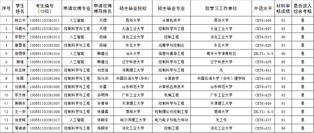 2021级博士研究生申请考核制入围考核人员公示(第一批次)