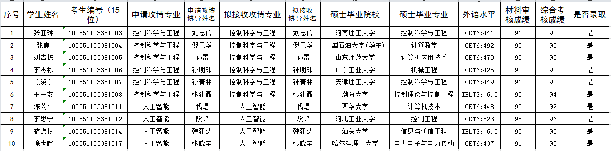 2021级博士研究生拟录取申请考核制员工名单公示