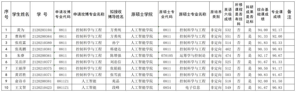 太阳成集团tyc7111cc接收2023级硕博连读名单公示(第一批次)