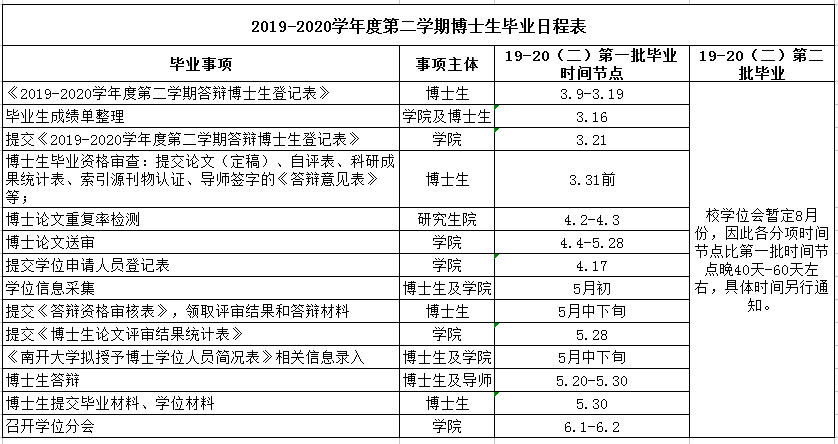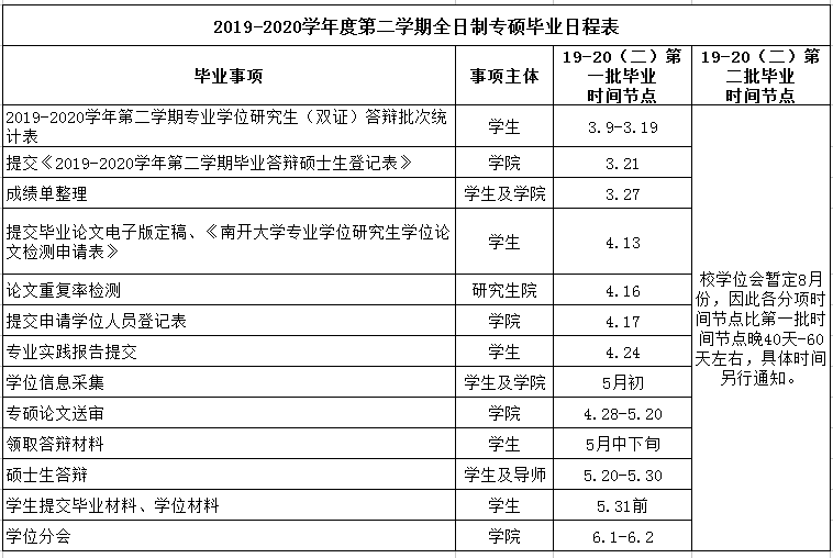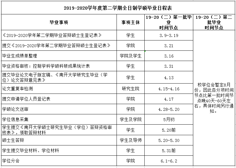 【毕业】2019-2020学年度第二学期研究生毕业日程表