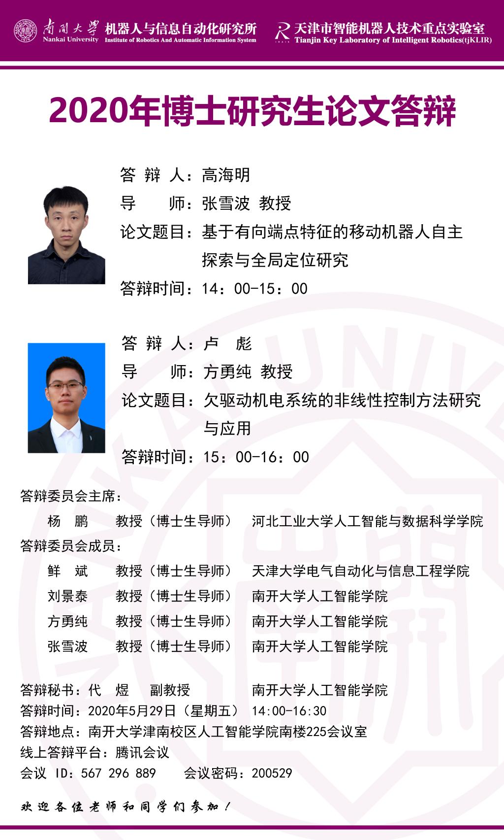 【答辩公告】太阳成集团tyc7111cc博士研究生高海明、卢彪毕业论文答辩公告
