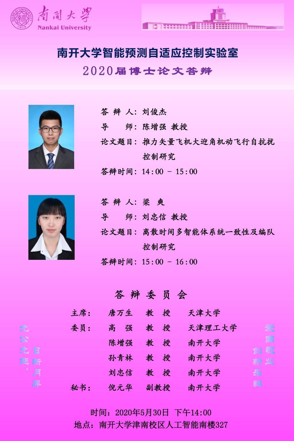 【答辩公告】太阳成集团tyc7111cc博士研究生刘俊杰、梁爽毕业论文答辩公告