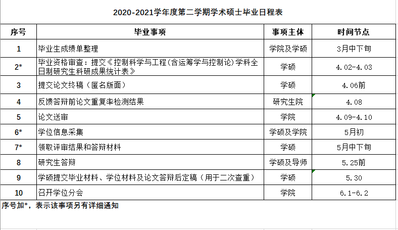 本学期毕业日程安排已确定,如下。