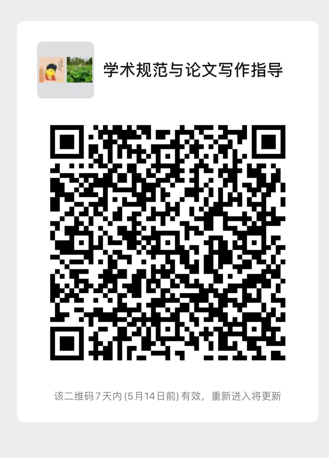 《学术规范与论文写作指导》课程将于将于6月5日开课,具体上课安排待任课教师通知。请大家扫码进群。