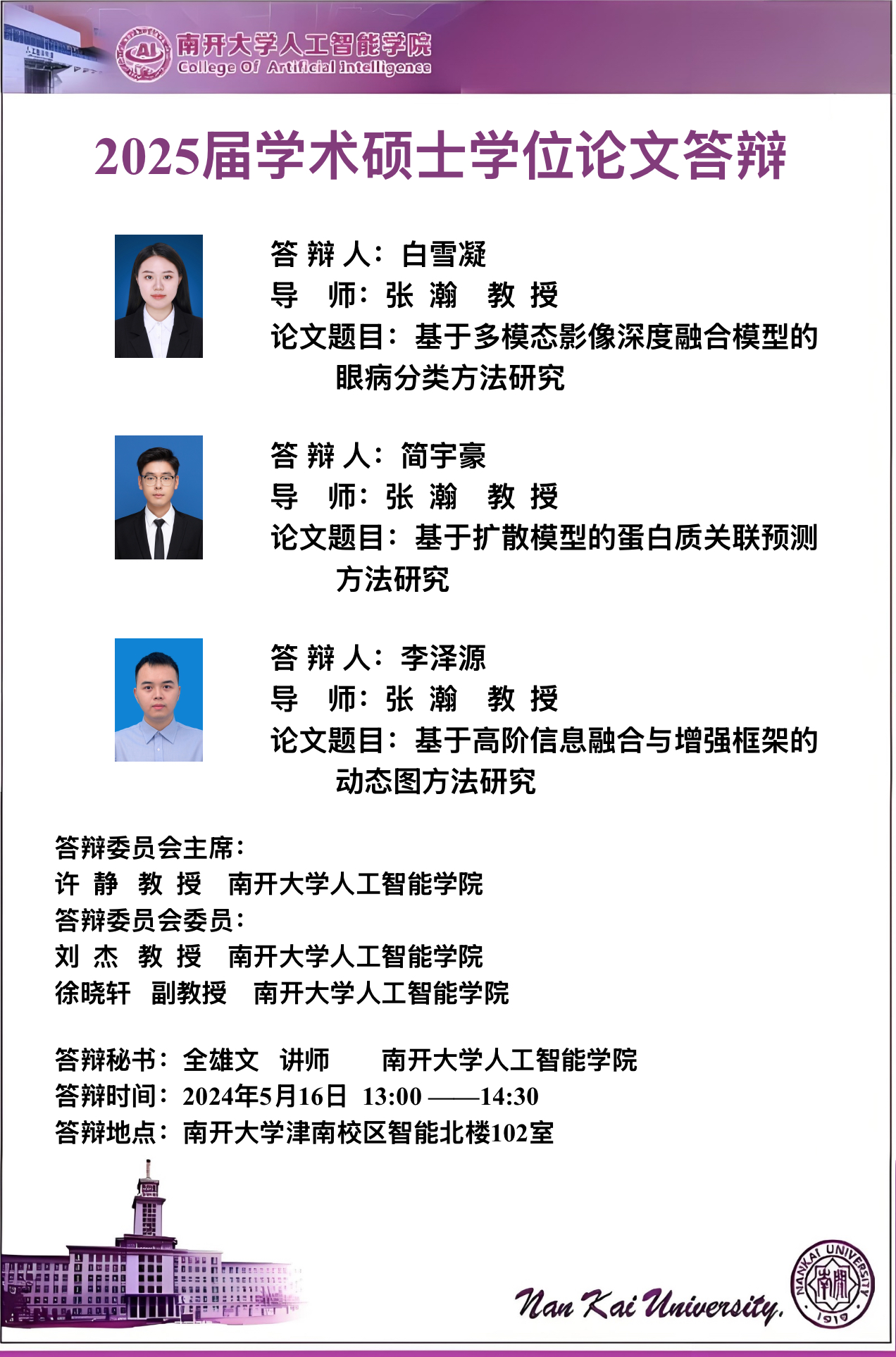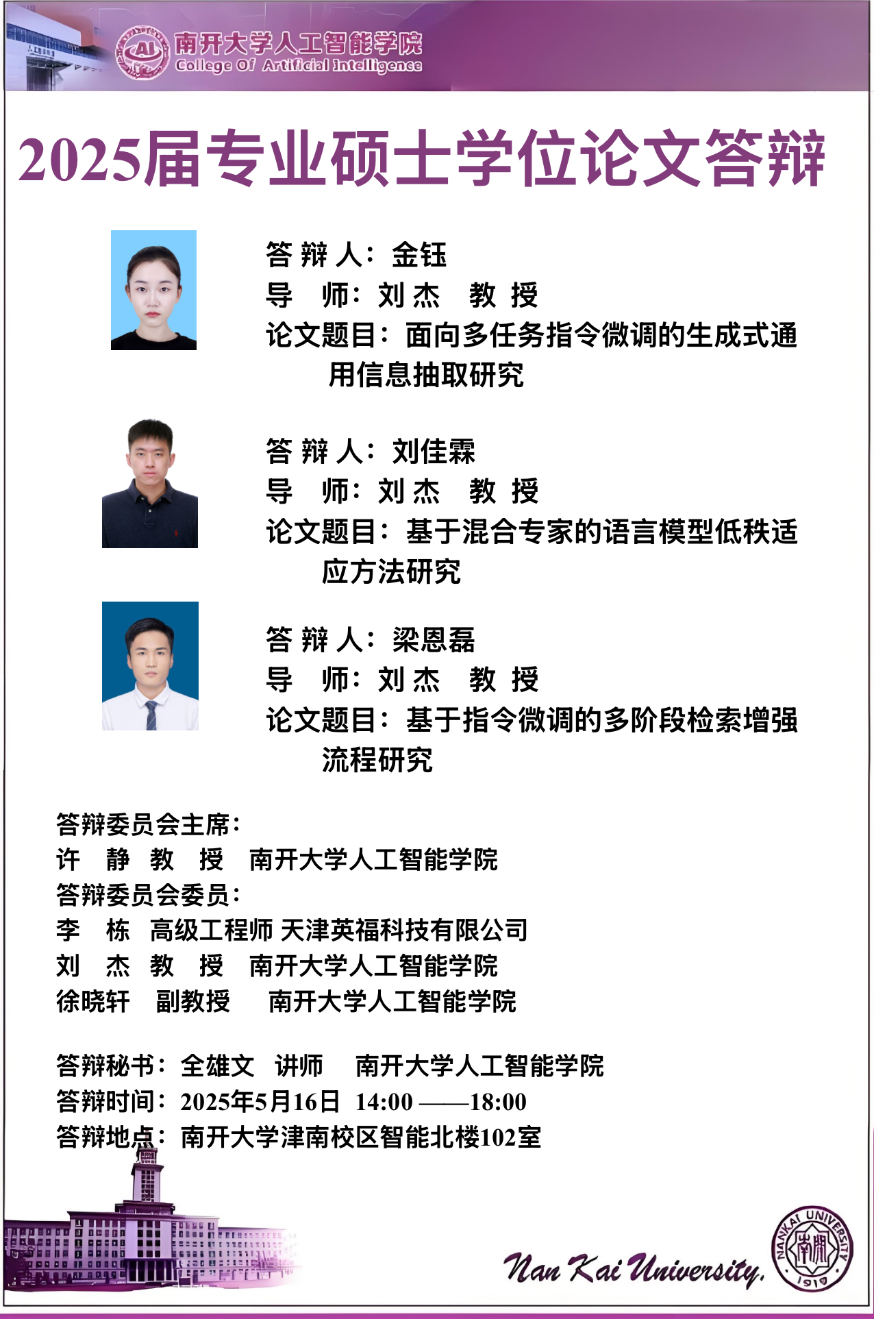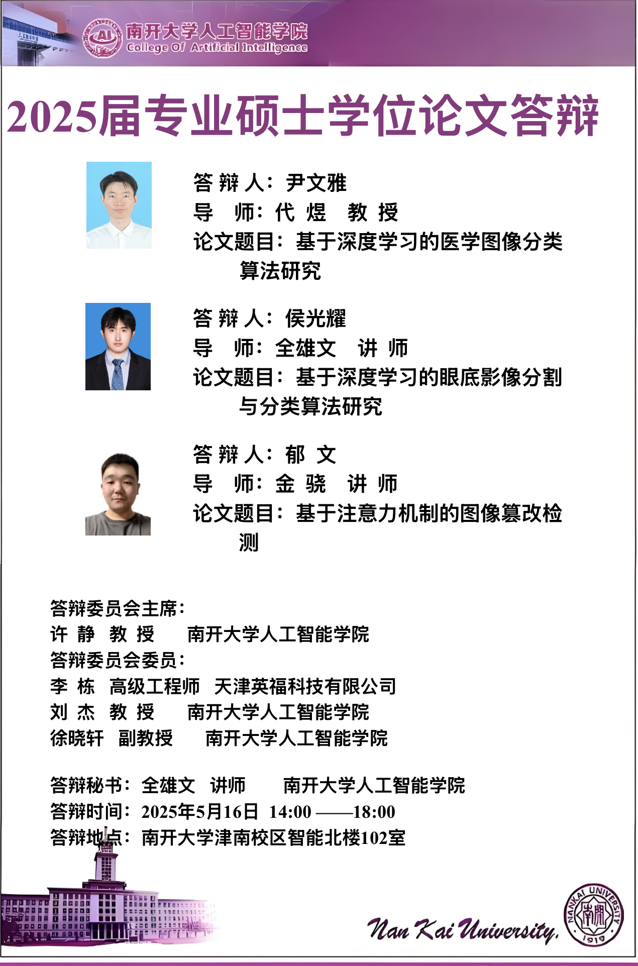 【答辩】2025届夏季毕业答辩公告----机器智能研究所、智能工程系