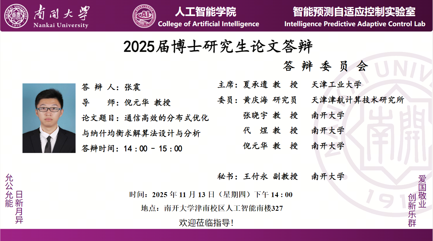【答辩】2025届冬季毕业答辩公告---博士