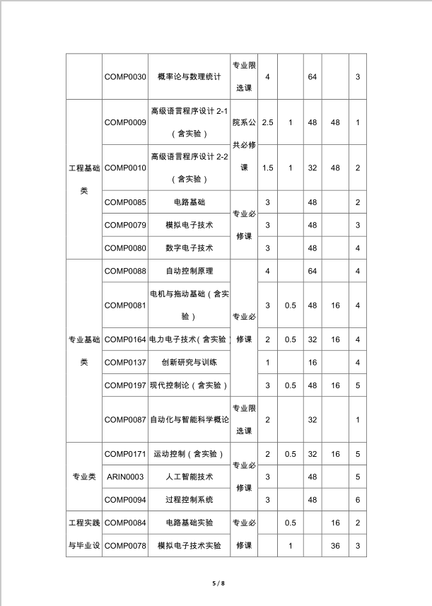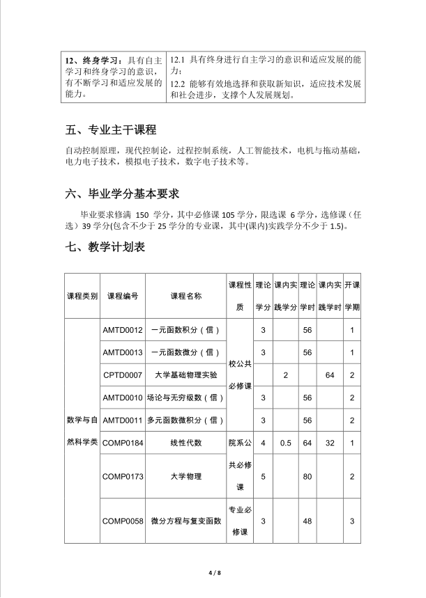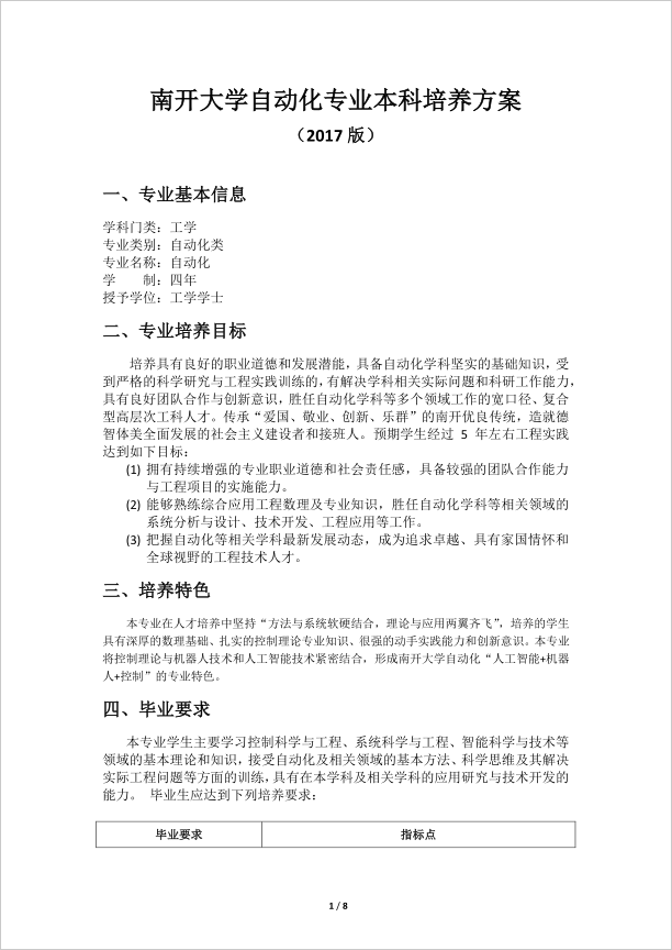 太阳成集团tyc7111cc自动化专业本科培养方案 (2017版)