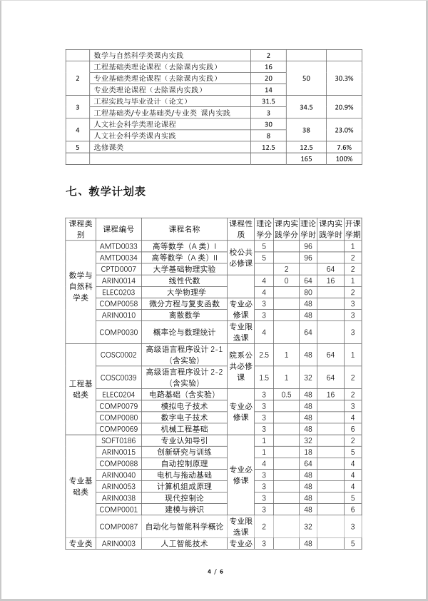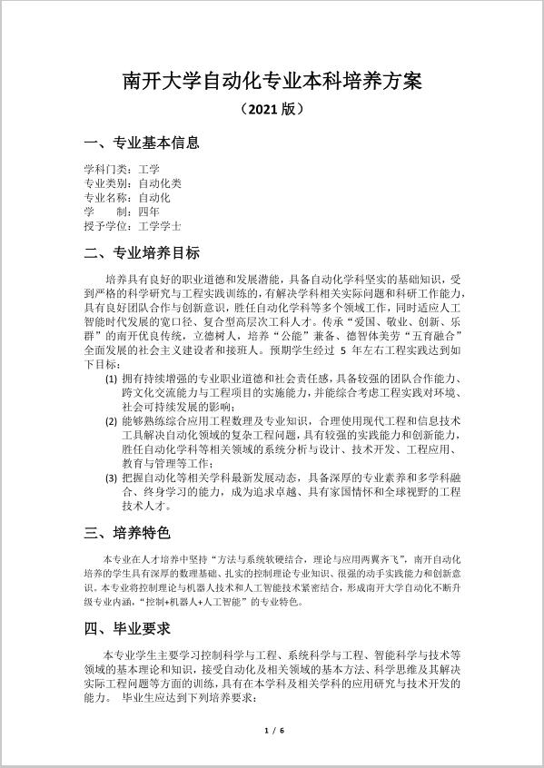 太阳成集团tyc7111cc自动化专业本科培养方案 (2021版)